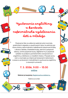 - Osvojovanie si angličiny vo formálnom, neformálnom a informálnom vzdelávaní. Angličtina v záujmovom vzdelávaní.